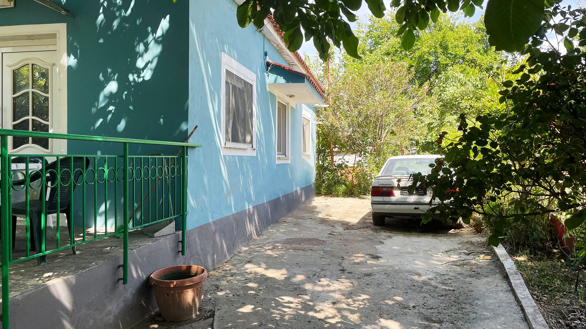 Η γεώτρηση εξυπηρετεί πλήρως τις ανάγκες άρδευσης του περιβάλλοντος χώρου, με αυτόματο σύστημα ποτίσματος τόσο για τον κήπο όσο και για μικρές καλλιέργειες οπωροκηπευτικών. Ξεχωρίζει ένα μεγάλο δέντρο καρυδιάς στην αυλή, που προσφέρει φυσική σκίαση και συμβάλλει στη μείωση των αναγκών ψύξης το καλοκαίρι, δημιουργώντας δροσιά και ποιητική ηρεμία στις ζεστές ημέρες. Στην πίσω πλευρά της οικίας, βρίσκεται το λεβητοστάσιο με τον καυστήρα πετρελαίου και δεξαμενή καυσίμου 500 λίτρων, η αποθήκη περίπου 8 τ.μ. και η γεώτρηση νερού από την οποία ποτίζονται αυτόματα τα φυτά της αυλής.